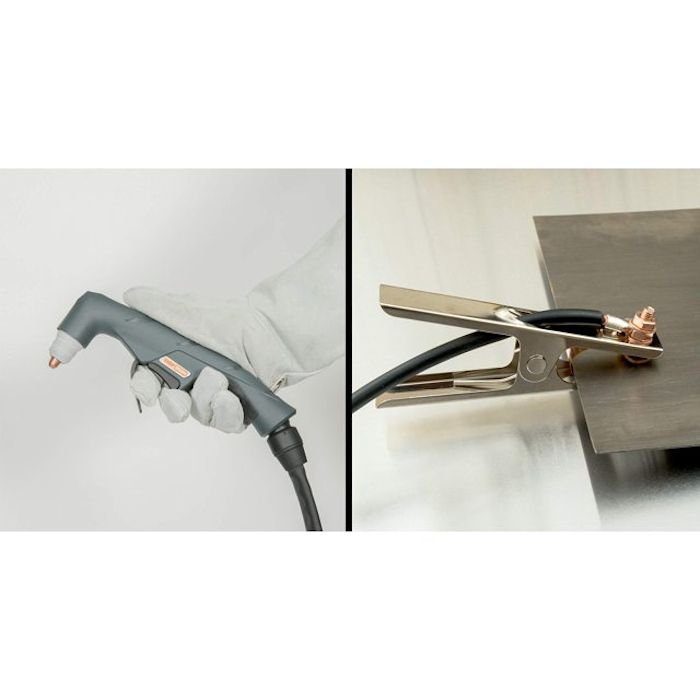 - Kit Includes 12ft TRF45 Plasma Torch (Direct Connect), 10ft Work Cable With Clamp, 115V/230V Power Adapter, And Consumables: (1) Electrode And (1) Cutting Nozzle